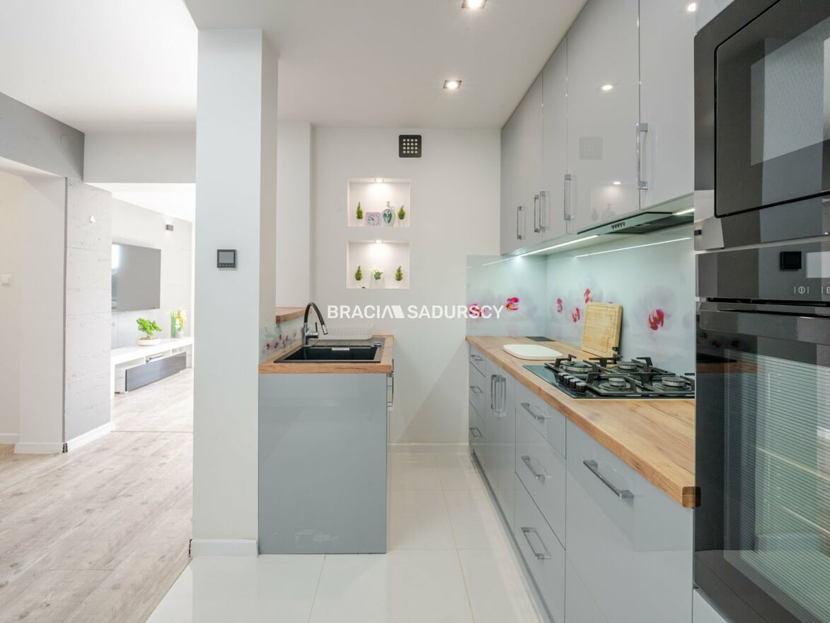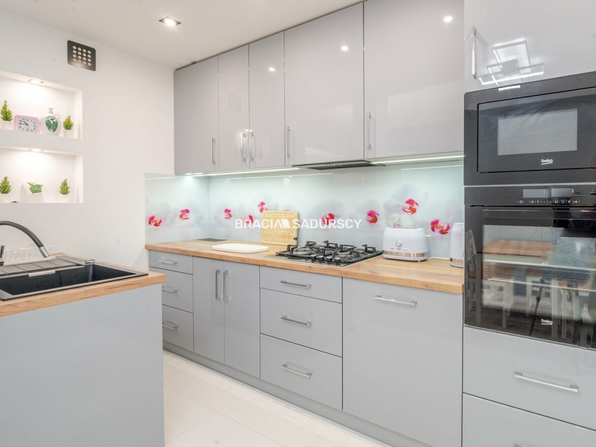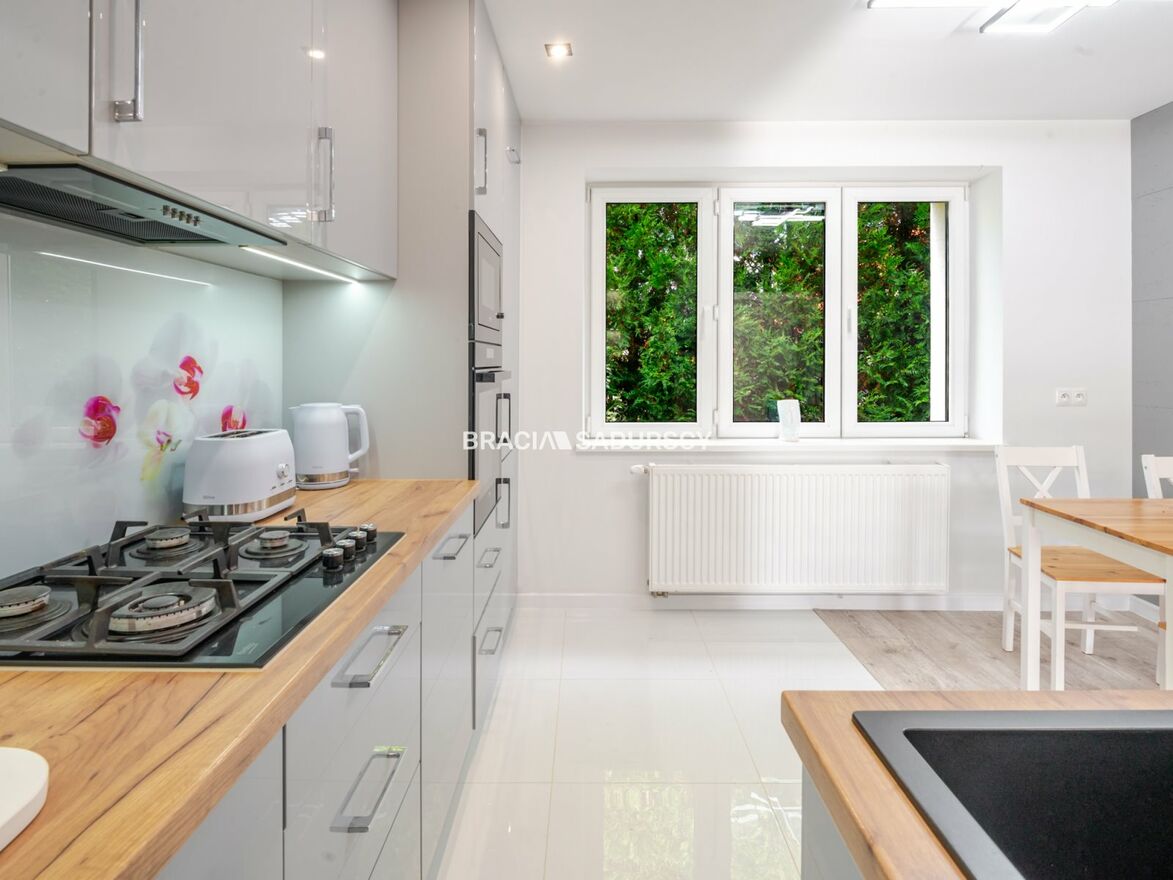 nowoczesna kuchnia z jadalnią, w pełni wyposażona i umeblowana (meble na wymiar),